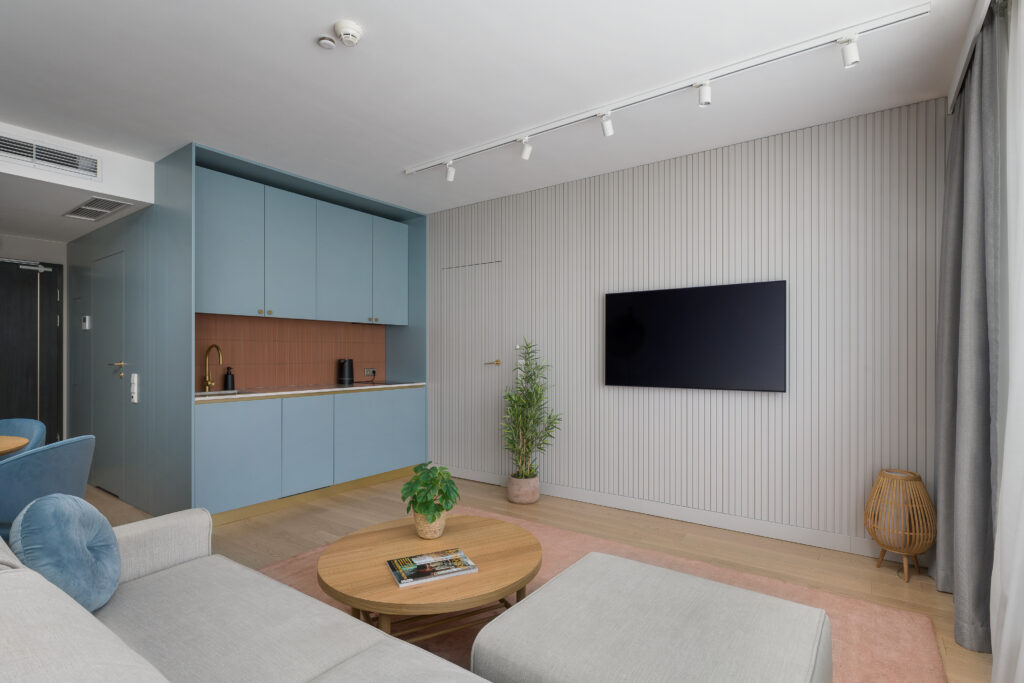 Przestrzeń apartamentu została zaprojektowana w taki sposób, aby zapewnić pełen komfort i wygodę.